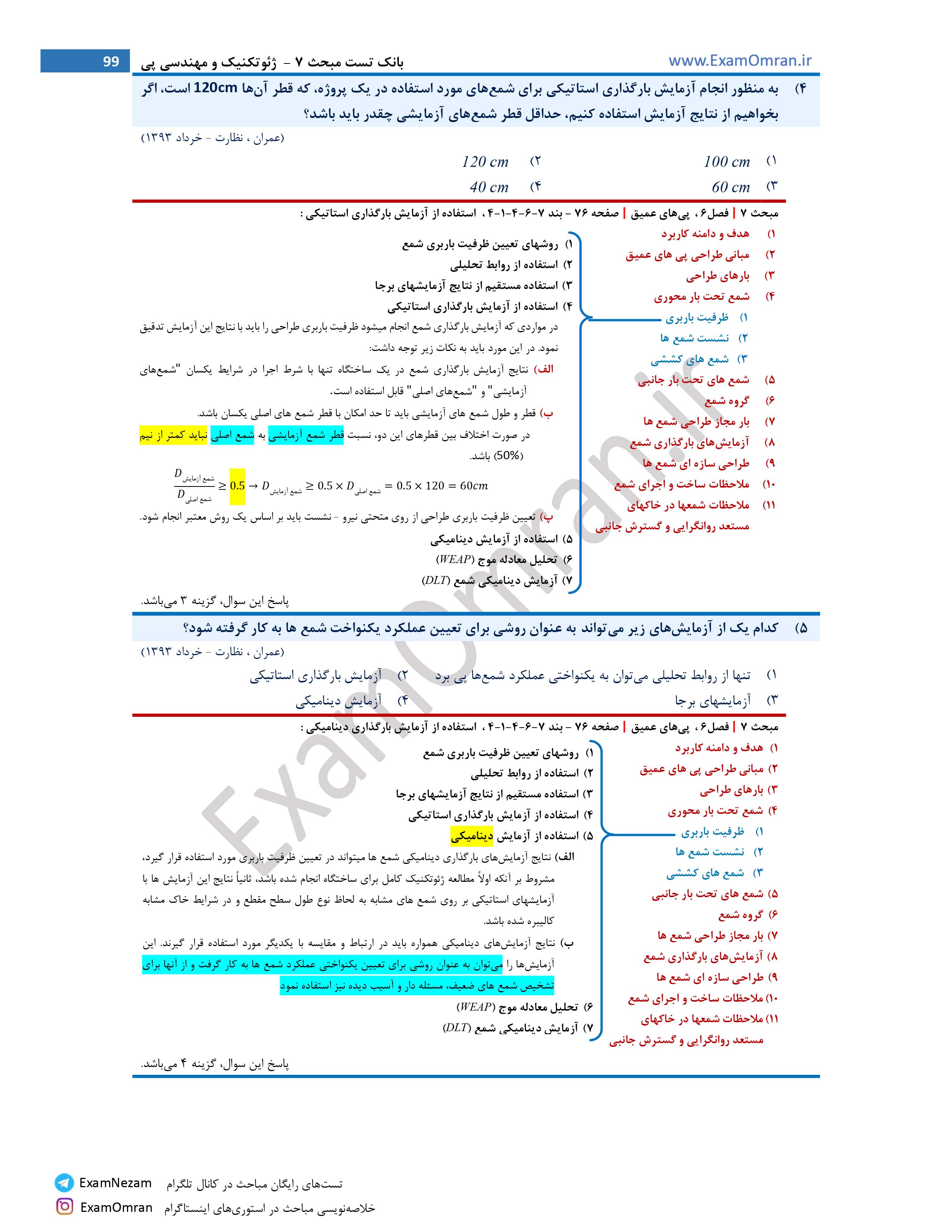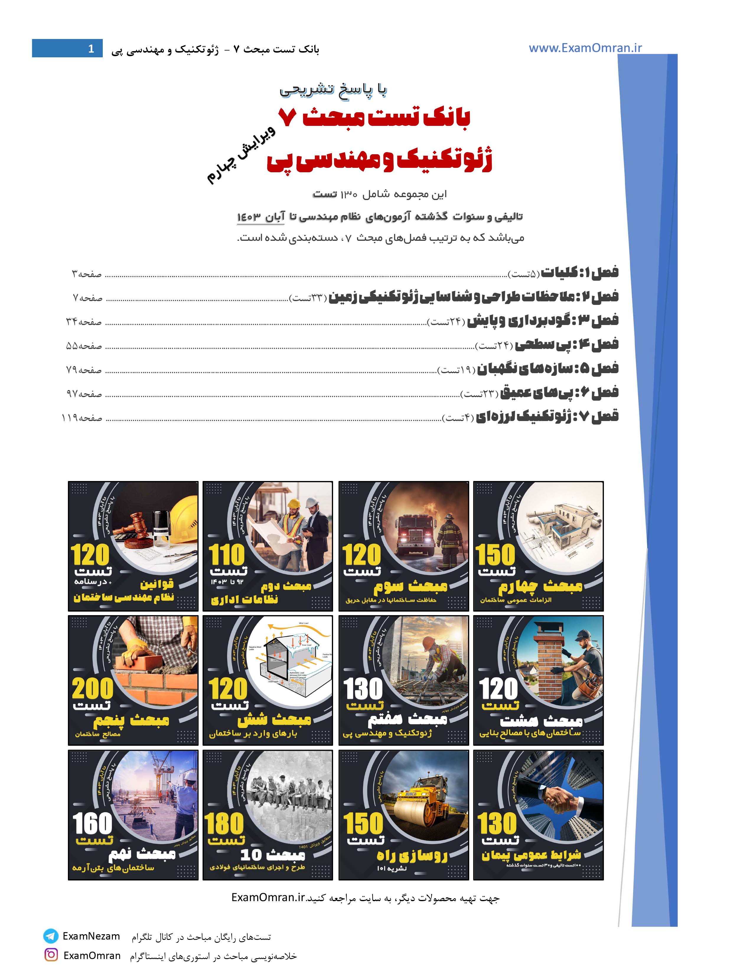 بانک تست مبحث7 شامل 140تست مبحث 7 از آزمونهای نظام مهندسی تا خرداد 1404میباشد که با پاسخ تشریحی در قالب فایل PDF ارائه شده است.